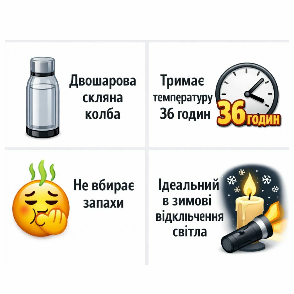 Скляна колба не вбирає запахи — чай, кава чи бульйон залишаються “своїми”.