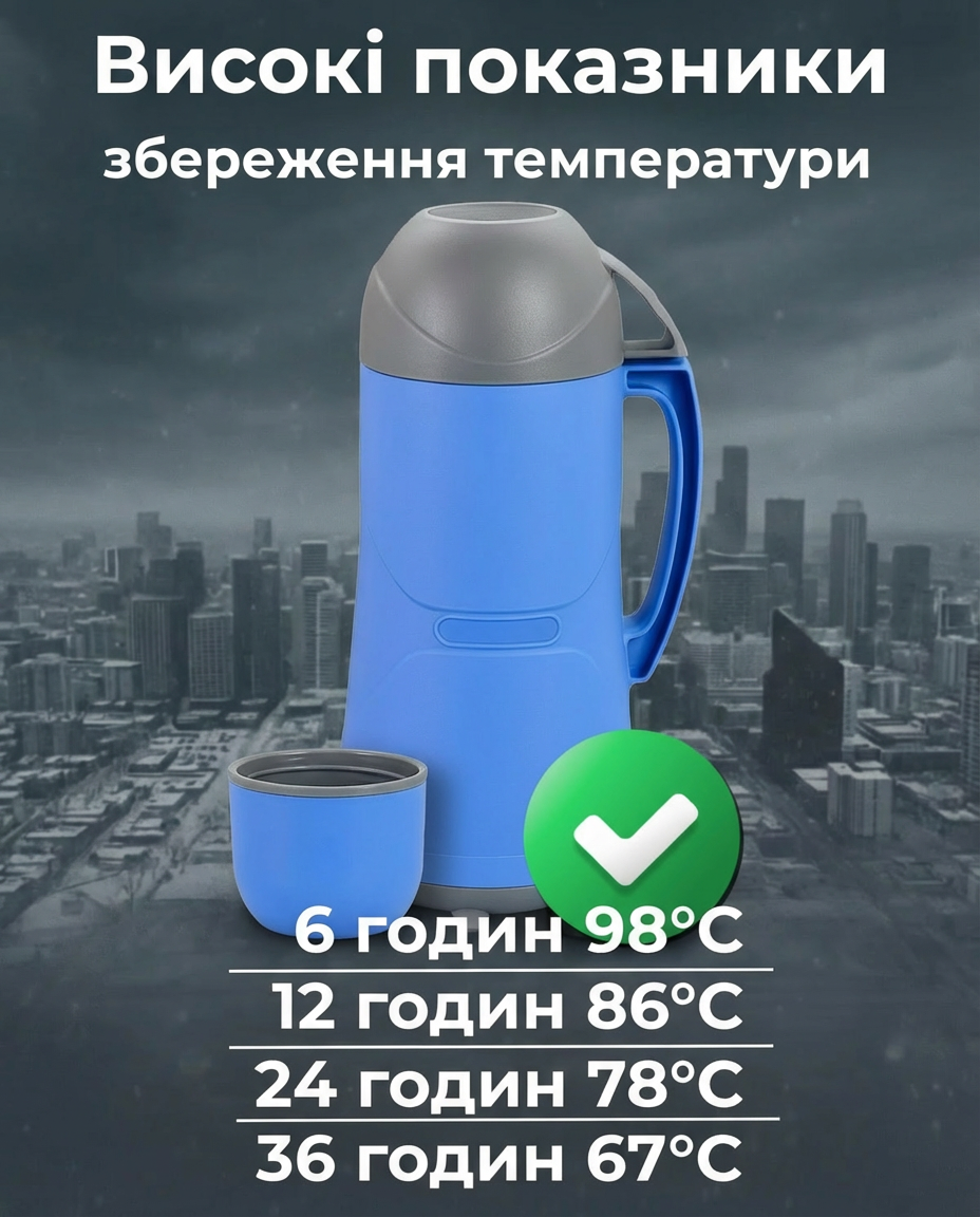 Працюю охоронцем у нічні зміни. У нас на посту холодно, особливо взимку. Взяв цей термос — і не пожалкував. Чай залишається гарячим всю зміну, а інколи й до ранку наступного дня. Дуже виручає, бо не завжди є можливість заварити новий. Річ реально потрібна тим, хто працює вночі.